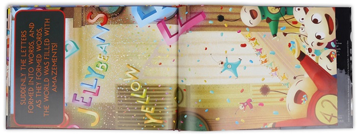字母的发源使整个世界有了色彩。对比前面的黑白画风,后半部分的彩页图使读者眼前一亮。