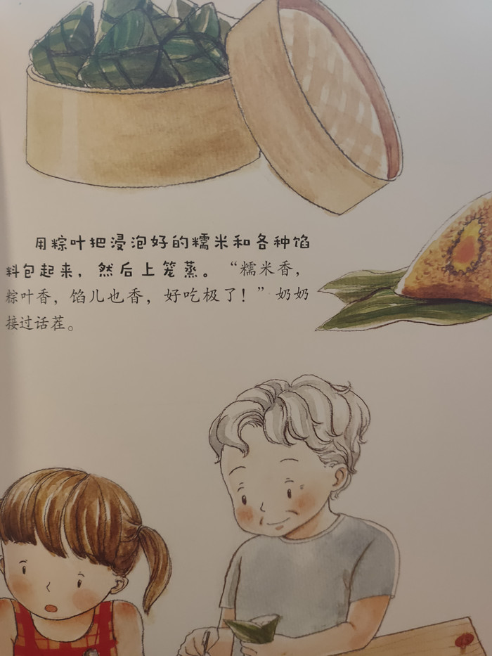 故事主要讲述通过小女孩小野的视角,来了解中国民间传统节日——端午节的文化风俗以及美食风俗。小野的家人告诉小野,端午要亲手缝制香囊,并佩戴在身上的原因:用于祛病驱邪,防身健体。因为邻居生病,小野还想将香囊送去医治。故事还讲述了小野的家人一起包粽子,并告诉小野包粽子的做法。最后在家人的陪同下参观了小野爸爸参与的端午习俗——赛龙舟。采用绘本形式制作,整本书内文共32页,除扉页和版权页外,正文部分共15个跨页;本书突出水彩画的绘画技法,画风清新,用色鲜艳,更符合儿童审美。