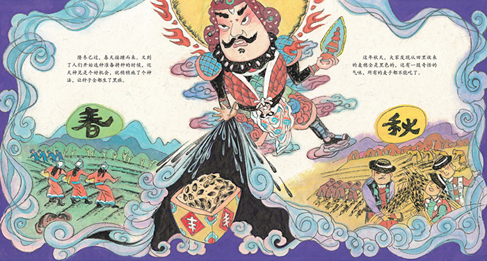 锡伯族·祈祷丰收抹黑节(中国民族节日风俗故事画库) 在很久很久以前,一对善良的老爷爷老奶奶幸福地生活在河边。有一天,家里飞来了两只燕子,还打了起来,有一只燕子腿受伤了。老爷爷和老奶奶精心照料受伤的燕子,而燕子为了报达他们,送给了他们一粒金灿灿的种子。老两口种下了种子,获得了丰收,并且收获了香甜的食物。他们把收获的种子又分给了大家,让家家户户都能够吃上香甜的食物。后来,大家就把这种植物叫作“麦子”。后来,巡天神为了惩罚大家浪费粮食的行为,让种子生了黑疸(dǎn),所有的麦子都不能吃了。大家意识到了自己的错误,就把脸抹黑,祈求巡天神的宽恕。巡天神被大家的诚意感动,便收回了神法。自此以后,每年正月十六这一天,巡天神就会巡视人间,而大家也会把脸抹黑,表示自己没有忘记当时的誓言。 锡伯族每年农历正月十六,都要过一个独特的节日——“抹黑节”,这个要互相在脸上抹黑的奇特节日有着神奇的来历。本书就用锡伯族那充满童话色彩的独有传说记述了“抹黑节”的由来。而在那传说背后是锡伯族劳动人民对丰收的向往,对自然灾害的抗击,对勤劳节俭美德的赞颂,他们用一个生动有趣的故事,浅近直白的将对后人美好的祝愿和长鸣的警钟结合在一起,将善良与节俭的种子埋藏在生活的细节中,传递给每一位族人。"