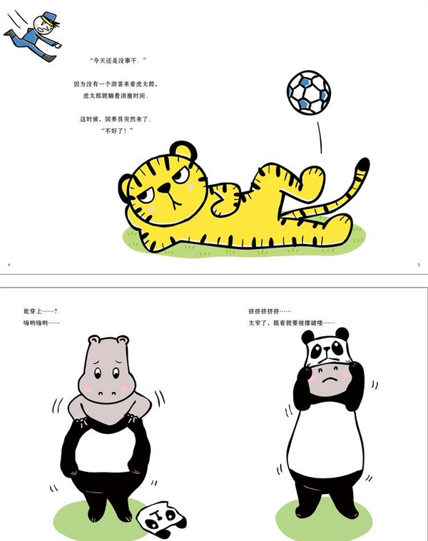 《一日熊猫》主要讲述了动物园里幽默的一天。熊猫是这家动物园很受欢迎的动物。可是有一天,熊猫感冒了。这下可糟了!左右为难的饲养员去求老虎帮忙。你猜,结果会怎样呢?无论谁读这本书,都会很开心。无论读多少遍傻傻的老虎幽默的一天,都会笑出声来的。