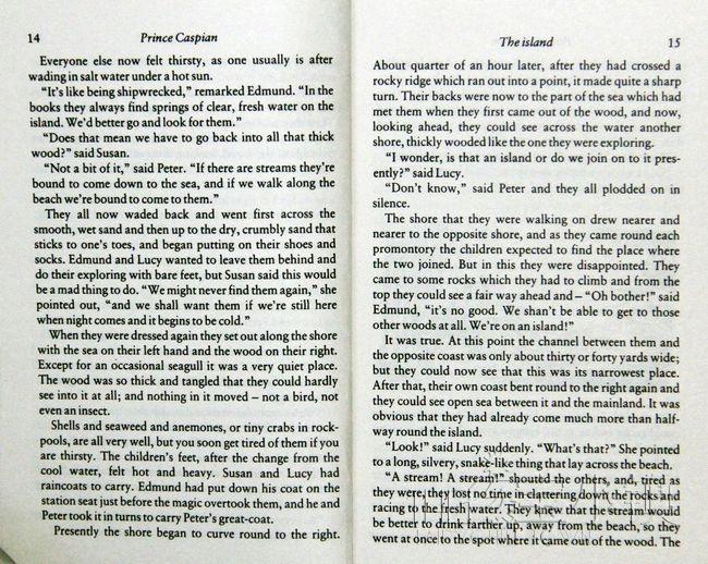 故事发生在彼得等四兄妹回到自己的世界一年后。他们四人在假期回校时坐在火车站的长椅上等车,忽然感到有股特殊的力量将他们拉进纳尼亚。他们得知,自从他们离开纳尼亚后已经过去了1300年。纳尼亚原国王的弟弟弥若兹篡夺了王位,杀害兄长。在他的残暴统治下,所有会说话的动物和精灵们都隐藏起来了。然而老国王的儿子凯斯宾王子渴望解放纳尼亚,他逃离王宫,在森林里找到了纳尼亚的老居民,并得到他们的支持。正邪双方展开激战。王子在寡不敌众的时候吹响了苏珊的魔法号角,将彼得四兄妹唤回这个世界帮助他们。他们领导纳尼亚的动物和精灵们战胜了邪恶的国王,凯斯宾王子继承了王位,纳尼亚又恢复了以往的生机勃勃。彼得四兄妹又重返自己的世界。