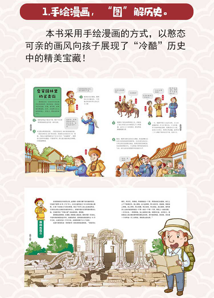 本套丛书是为4~8岁儿童制作的中国地理百科绘本,共10分册,分别是《长城》《故宫》《兵马俑》《圆明园》《丝绸之路》《长江三峡》《敦煌》《泰山》《西湖》《夫子庙》。本书以地理知识为切入点,以具有代表性的城市、建筑、文物为出发点,分别介绍与之相关的历史、文化、传说、政治、经济、生活等方面。