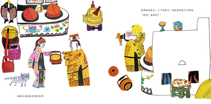 这是一段关于灶王节的传说故事,也是一个极具儿童趣味的绘本故事。 从前,有一个嘴馋的皇帝,走到哪儿吃到哪儿。有一天,他遇见了一个姑娘,提着一篮他从没吃过的枣糕,他馋极了,吃完了篮子里的枣糕,还想把姑娘带回去,让她天天给自己做枣糕,便故意刁难她,都被姑娘轻松化解。皇帝不死心,想伸手抓她,谁知姑娘一伸手,一下把皇帝打上了灶台,贴到了墙上,而姑娘呢,架着彩云飞上天去了…… 本书曾获第四届全国连环画创作评奖绘画二等奖。