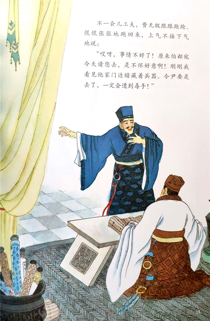 楚国大将伯郄宛战胜回国,楚王非常高兴,国家大事都找他商量。可这让大臣费无极心生了妒意,他想了一招,要让伯郄宛知道自己的厉害……