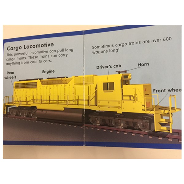 My first book of trains is a fascinating introduction to trains from all over the world. the bright,realistic illustatios and large,simple text bring this ever-popular subject to life