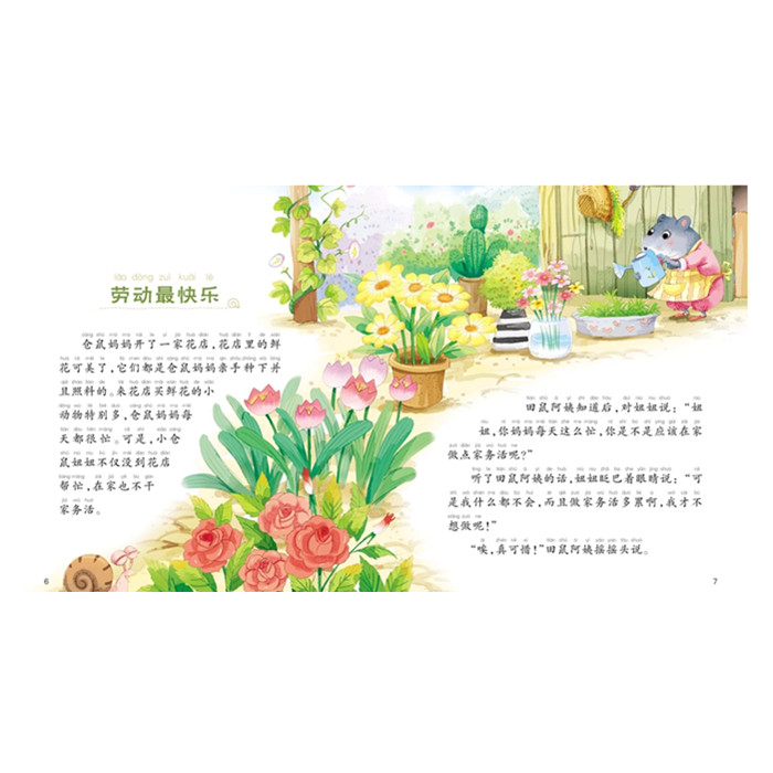 《美德故事》一书中,不讲礼貌的西西竟然也会说谢谢了;爱跳舞的美美也明白了事理,会在跳舞时把音乐声调小一点儿了;热心的邮递员小熊,每天辛苦地忙着为大家服务,心里充满了快乐;好心的箭猪先生,收到了大家用爱心编织的一床暖暖被;吵得不可开交的手指兄弟,*后学会了团结……一个个饱含意味的关于美德的故事,无声地传递着家长希望孩子拥有好品行的期望。
