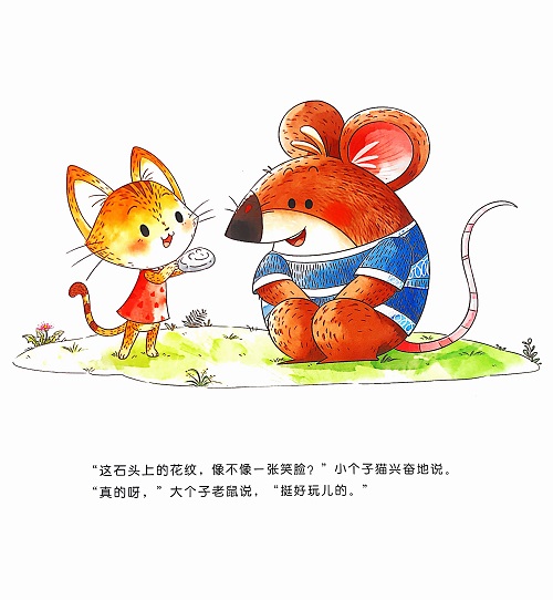 在《大个子老鼠小个子猫绘本》中,大个子老鼠憨厚耿直,挺着圆溜溜的肚子,小个子猫活泼聪明,小小的脑袋却有着大大的耳朵。两个人互为天敌,却能够友好亲密地相处在一起,互帮互助,在平凡的日子里一起寻找不平凡的乐趣。这套书要向孩子传递满满的爱与正能量,正面引导孩子感知自信、平等、求知、友爱、勇敢等品质的珍贵之处。
