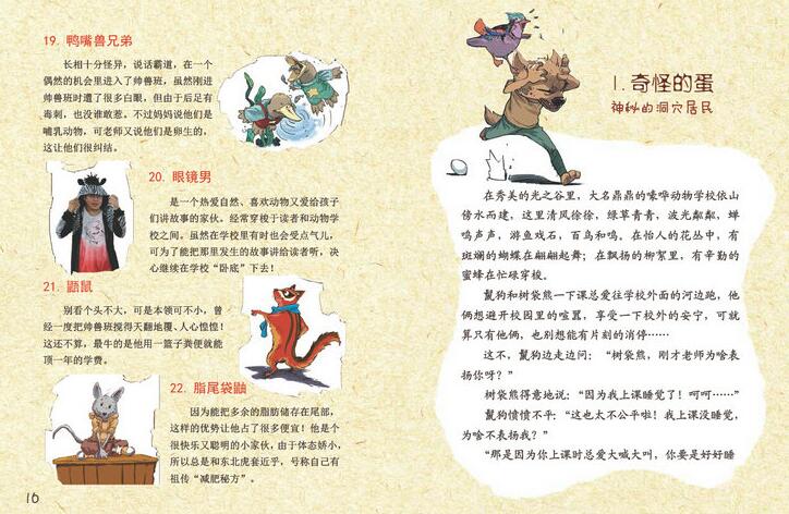 不过,你千万不要以为这里是宁静的世外桃源,因为这里还居住着成千上万、各种各样的动物居民。他们构成了一个喧嚣的世界,居民们为了使自己的种族变得更加强盛,他们开办了一所“嚎哗动物学校”。