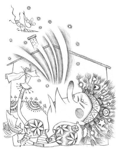 “哪里来的冷气?”阿比抬头一瞧,原来沙发边上有个不大的冰箱,冰箱门没有关上,冷气正是从那里出来的。阿比朝冰箱门里瞧瞧,看不清里面还有什么。“这是间不错的开放着冷气的小屋子。”阿比想,要是在这间小屋子里坐坐,一定格外舒服,格外凉快。阿比一点儿没犹豫,就跳进了这间有冷气的“小屋子”。就在这时,从里屋走出一位老奶奶,她走进客厅一眼瞧见冰箱门没关,说道:“瞧我,真是老糊涂了,刚才取冰块忘了关上冰箱的门。”