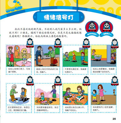 托马斯和朋友幼儿情绪管理互动读本?第二辑共10册,分别以:逆反、好胜、羡慕、羞怯、委屈、沮丧、好奇、急躁、傲慢、孤独为主题。书中共设8大亲子互动版块,让父母和孩子读玩结合!