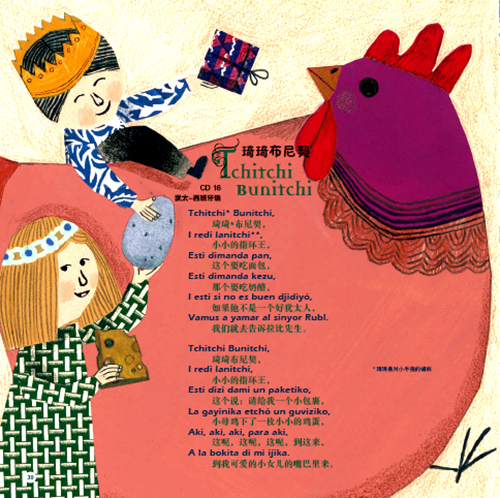 我喜欢这张CD的创意。一张盘里有这么多种语言,孩子从一开始就能感受这多彩的音乐世界和各不相同的文化。