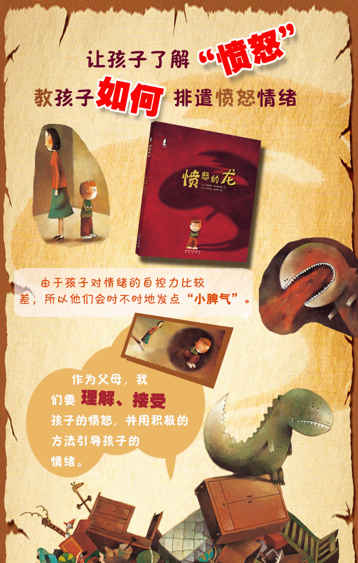 阅读的时候,你会发现,书中的小主人公就像自己家那个人小脾气大的孩子,生起气来谁都不想理。作为父母,你是否感觉到手足无措呢?快来看看书中这个已经开始萌生“自我意识”的孩子吧!生气的时候,他会变成一只到处搞破坏的龙。这只龙不会思考,也不认识任何人,但当他发泄完之后,愤怒的情绪就会慢慢平息下来……