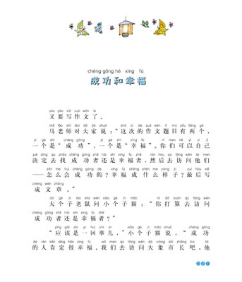 “应该是一回事儿,”小个子猫说,“成功的人肯定很幸福。我们去访问大象市长吧,他很成功的,整天也乐呵呵的。”