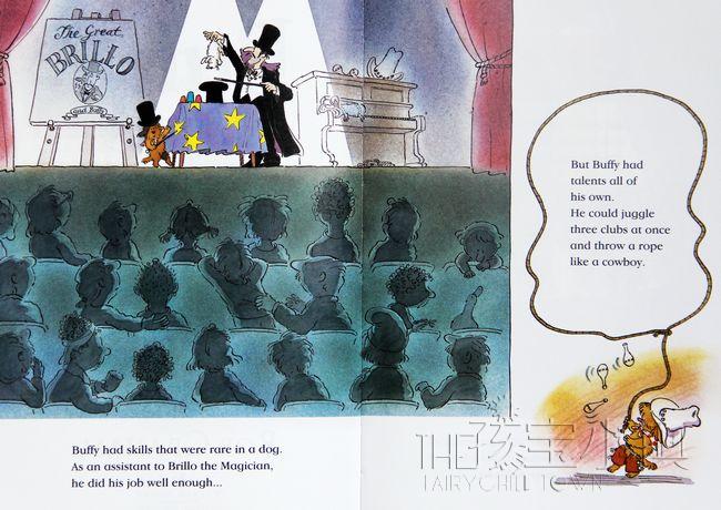 Buffy is a performing dog with HUGE talents. He can play the harmonica, tap-dance and do magic tricks. But when he outshines his master the magician, Buffy is in the doghouse. Kicked out onto the street to fend for himself, Buffy has the blues ... until sweet Mary Kelly bursts into his life like a fanfare from Heaven! At last, after all his wanderings, he finds someone who really appreciates his extraordinary talents.