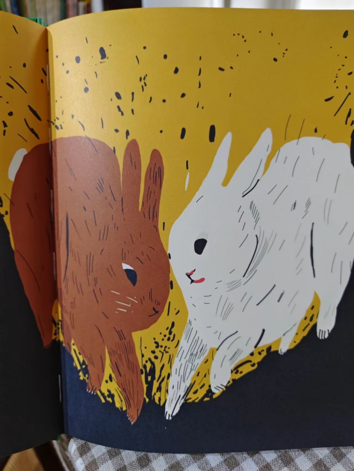 儿童故事绘本,这本书讲述了黑暗的地道中,一只白色的兔子和一只灰褐色的兔子。他们想去马路的另一边的绿草地,所以决定挖一条地道。一路上,经过了鼠窝,蚯蚓的洞洞。地面上,是人类的城市,有汽车飞驰。他俩在一起,不停地挖,一边聊天,一边回忆。故事涉及了很多主题:团结与合作、安逸和危险之间的权衡和为达成目标应具备的耐心和坚持等等。