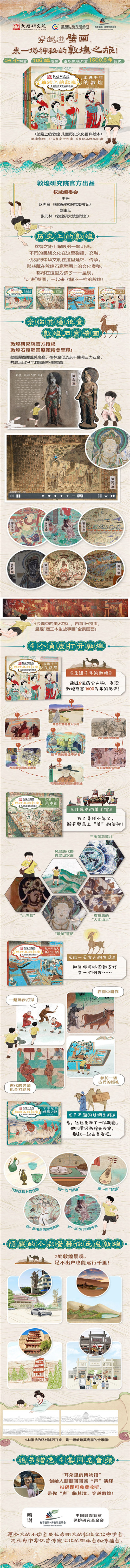 敦煌研究所官方出品 敦煌研究院官方出品并主编,现任党委书记赵声良推荐,以巧妙设计的时空穿越故事和高清实景壁画图,为小读者展现敦煌石窟千年来的文化艺术价值,让小读者直观地领略敦煌的前世今生,和它震撼人心的历史生命力。 身临其境欣赏石窟壁画 敦煌研究院授予的壁画原图,覆盖莫高窟、榆林窟以及东千佛洞三大石窟,共展示出54个洞窟的106幅壁画,内文图上以榜题形式增加洞窟编码,当你来到莫高窟参观,就可以轻松地在壁画上按图索骥,找到它们的身影。 四个角度绽放敦煌文明 以历史、艺术、生活和丝绸之路四个主题为切入点,感受敦煌2000多年的风雨路程,体会敦煌艺术的璀璨价值,参与古代敦煌人的朴实生活,穿梭于丝绸之路上的大融合,每一个主题都为读者揭开敦煌的神秘面纱。 包罗万象的趣味知识 敦煌文化博大精深,但巧妙的融合,也能让孩子看懂敦煌文化。书中所有知识点都紧紧围绕壁画内容展开,“壁画知识”“冷知识”“历史知识”等94个小栏目涉及敦煌的方方面面,坚持以孩子的兴趣点出发,简单有趣不枯燥,让孩子看得进,看得懂。 实景图带你走遍敦煌 玉门关、九层楼、鸣沙山、敦煌夜市,用风景名片的形式为读者展示敦煌7处著名景点,化身资深小导游,侃侃而谈。四本环衬展示全手绘莫高窟1600米全景图,震撼读者每一次打开的瞬间。