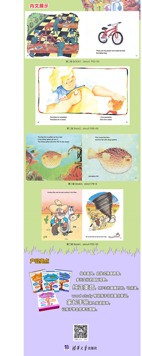 朗文携手哈佛20年研发成果!自然拼读必读!实操性强,从短句过渡到长句的发音学习!每天10分钟,由英文阅读的萌发阶段,*终实现英文独立阅读19个可点读的英文绘本故事!以简单句为主,逐步增加否定句、疑问句等,但句式结构重复出现确保孩子的理解和记忆纯正美音,全球畅销1800万册1堂外教课学费=机灵狗阅读资料图画精美,画风多变,区别于粗制滥造的分级英语阅读!Word Study帮助孩子总结重点,家长手册深入阅读指导。