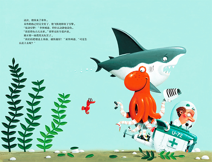 德里克是位海洋动物医生,他每天都会驾驶特别的医疗潜艇潜入海底,寻找需要帮助的鱼儿和海洋生物。视力不好的海马、牙痛的鲨鱼、触腕受伤的章鱼、心情抑郁的鲸……德里克友善地对待每一个病人,帮助他们解决烦恼。不过这次,德里克医生自己遇到了一个棘手的难题,他的病人们纷纷赶来给予帮助。故事通过帮助者与被帮助者角色的转换,巧妙地传达了善良的意义。同时,在自己的小小岗位上出色工作的德里克医生,也体现了梦想的价值。