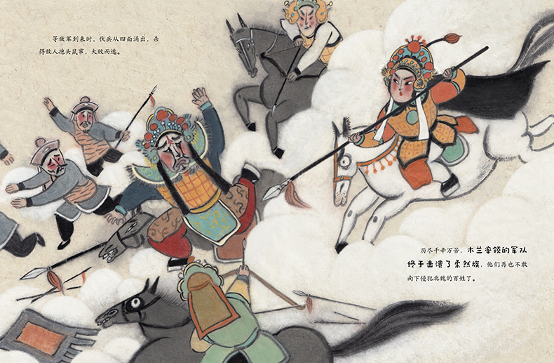 南北朝时,北方游牧民族屡屡侵犯北魏边疆,边关告急。朝廷征兵去前线打仗,木兰担忧老父体弱,弟弟年幼,决定女扮男装,代父从军。在军营中,木兰刻苦用功,练习武艺和战术。戎马倥偬,十二年过去,身经百战的木兰渐渐成长成为一个有雄才伟略的军官。北魏的君主要重赏木兰,然而木兰不恋功名利禄,只求赐与千里马,回到故乡,与家人团聚。