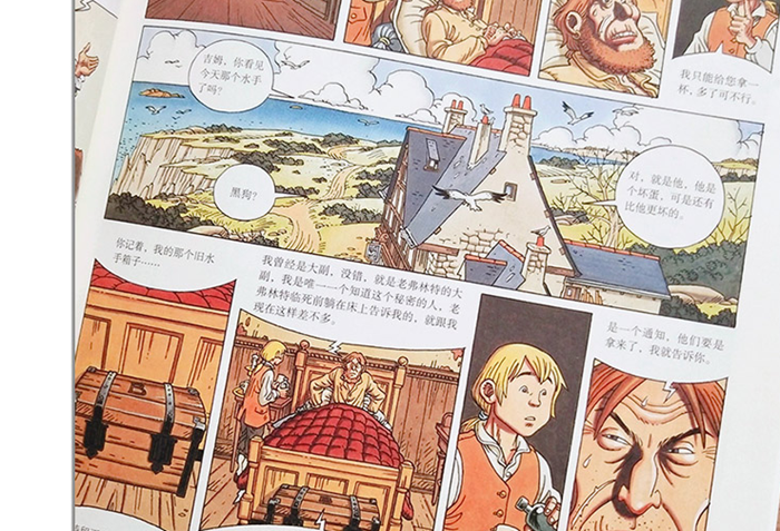 吉姆意外从海盗那里得到一张藏宝图,这件事引起了当地乡绅权朗先生的兴趣。为了找到这笔财富,权朗乡绅、医生和吉姆驾驶着一艘三桅船去荒岛探险。不料船上混入了一伙海盗,他们妄图夺下三桅船,独吞这笔财富。吉姆无意中得到这个消息,便和权朗乡绅、医生、船长等同海盗展开了英勇机智的斗争,*终战胜了海盗,找到了宝藏。