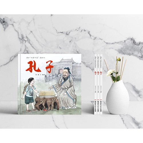 《“故事中国”图画书·孔子》以图画书的形式,形象生动地向小朋友们诠释孔子的故乡及儒家思想:小明的爸妈带着小明去参观孔子的故乡——曲阜。这里有著名的三孔,即孔庙、孔府及孔林。参观过程中小明在花园的亭子里发现了一副老旧的棋盘和棋子,当小明拿起一颗棋子之后竟然来到了2400多年前孔子的家。孔子教小明“六艺”的同时,小明将现代的工具与之一一对应。用穿越的情节将古代与现代联系起来,体现出编绘者别出心裁的创意诠释。