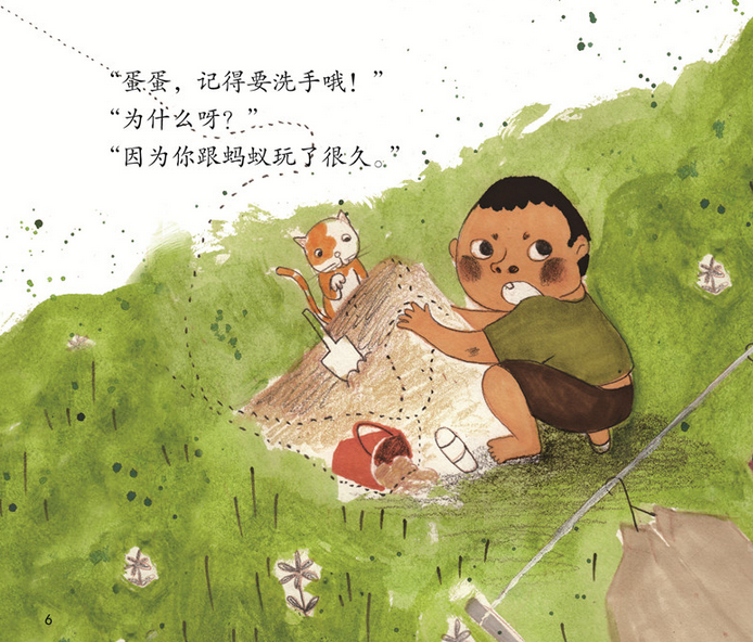 “宝宝,记得要洗手哦!”“为什么呀?”“因为你跟蚂蚁玩了很久。