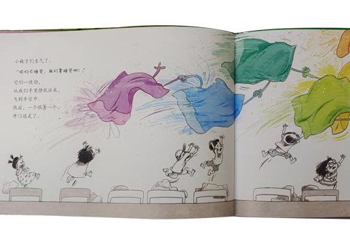今天是星期八,我们不想睡午觉,拽着小被子又吵又闹。小被子们生气了:”你们不睡觉,我们要睡觉啊!“它们手拉手,呼啦啦飞出好远……”快追呀,我们的小被子逃走了!“