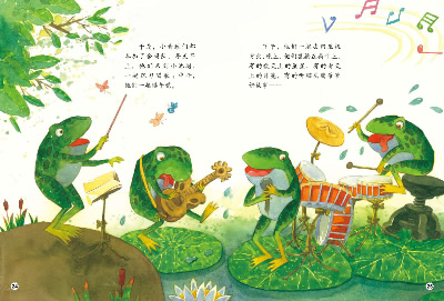 “呱呱呱”“呱呱呱”,从早到晚,小池塘边一直歌声不断,都半夜了,还有一只小青蛙在“呱呱呱”地唱歌。