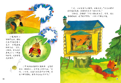 小甲虫把核桃推得到处翻滚,也没有弄出一颗核桃仁。小甲虫也叹叹气说:“真的,小松鼠,我看你还是去吃松子吧,这些坚硬的核桃,你是永远无法弄开的。”