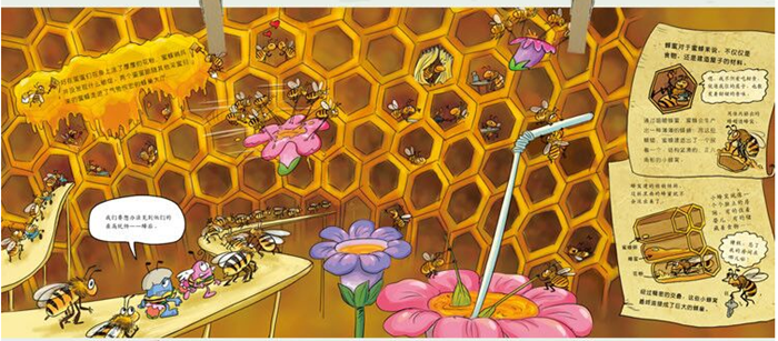 大黑熊和蜜蜂让蛋蛋们吃够了苦头,更要命的是,因为意见不统一,蛋蛋们的集体意识一盘散沙。好在臭美蛋让大家重新团结在了一起,他们决定去找蜜蜂们联手对付大黑熊,救出太极龟师父。 蛋蛋们乔装成蜜蜂,进入了戒备森严的蜂巢,终成功说服了蜜蜂女王。在蜜蜂们的帮助下,蛋蛋们顺利赶走了大黑熊,救出了师父。他们还一起举办了一场特殊的“鲜花大会”呢! 知识点:蜂巢的构造是什么样的?蜜蜂是如何采蜜的?鲜花是如何吸引蜜蜂的?世界上辛劳的工作是什么?……