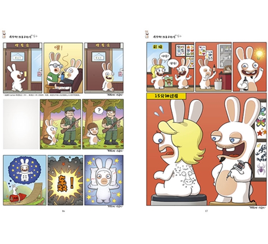 《雷曼4:疯狂兔子》是由全球知名游戏公司——法国育碧研发的电子游戏,自推出后风靡全球,深受玩家一致好评。该电子游戏的主人公——古怪、滑稽的疯狂兔子更在Youtube上吸引了5000万粉丝,相关产品销量超过1400万。“疯狂兔子爆笑漫画书”是一套以疯狂兔子为形象的漫画书,为国内首次出版,讲述了疯狂兔子是一群外星侵略者,他们喜欢模仿人类的行为,也因此产生了各种各样的笑话。这些兔子唠叨着谁也听不懂的兔语,时不时大声尖叫,凭借与生俱来的幽默感带给读者无穷无尽的欢笑。丛书插图线条流畅,情节风趣幽默,能够激发小读者的想象力和创造力,带来更加丰富的阅读体验。分册《假面剑客》讲述了兔小姐遇到了抢匪,疯狂兔子想要英雄救美,他特意戴上“眼罩”,感觉自己就是传说中的佐罗。然而他的出现却让抢匪和兔子小姐目瞪口呆,这到底发生了什么呢?本书可以让小读者发现事物的不同,从而提升阅读的兴趣。