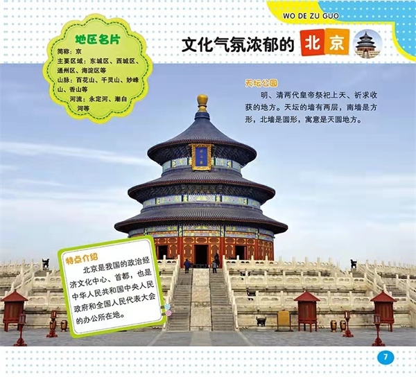 本书向孩子介绍了中国的各省的特点,有人文,有地理,有美食等,让孩子对自己的祖国有一个初步的认识和了解。信息量大,知识点多,画面色彩鲜艳,文字简明扼要,非常适合儿童阅读,为孩子们了解世界打开了一扇明亮宽敞的窗户。