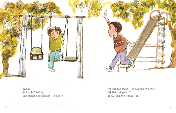 游乐广场上的小霸王萨米任性霸道,每次凯文去游乐广场玩的时候,总是被萨米赶走,而且扬言如果凯文敢继续玩游乐设施,他就会教训凯文。在爸爸的引导下,凯文学会了如何用智慧一步步去“反击”,*终和萨米达成和解,成为了好朋友。