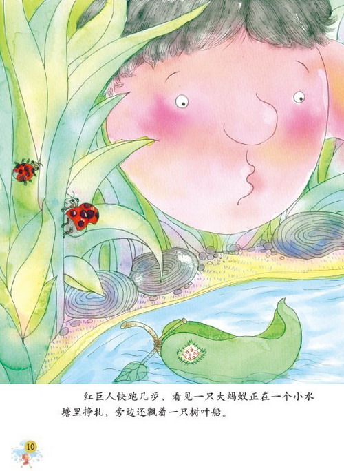红巨人很喜欢洗澡。可是,他要走很远的路才能到达月亮湖。他巨大的汗滴在通过的森林路上形成了一个个小水塘,这给森林里的小动物们带来了灾难,常有小动物因滑到水塘里而溺水。红巨人很内疚,后来森林里的动物伙伴们想出了一个好主意,解决了问题。红巨人可以天天到月亮湖去洗澡了!故事告诉小朋友们,小水塘看着平静,其实蕴藏着很多危险,要尽量避开。