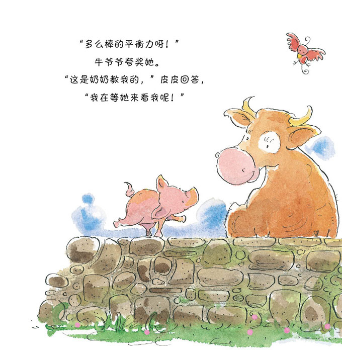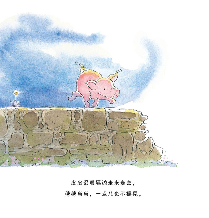 就像所有的孩子那样,皮皮猪可是很顽皮的。她喜欢在爸爸还没睡醒的时候,骑在爸爸的头上,在爸爸的肚子上跳来跳去,狠狠地咬爸爸的尾巴。就像所有的孩子那样,皮皮猪也缺乏安全感,只要妈妈不在身边,就会觉得很不安,一心只想找到妈妈,连拥抱、编花环、玩追逐游戏,这些她最喜欢做的事也不能让她高兴起来。就像所有的孩子那样,皮皮猪最渴望的是和爸爸、妈妈、奶奶待在一起,和亲人们在一起,所有的事情都变得那么有趣。皮皮猪就是这么一个顽皮又可爱的孩子,她的身上有每个孩子的影子。她的故事,也是你的故事。