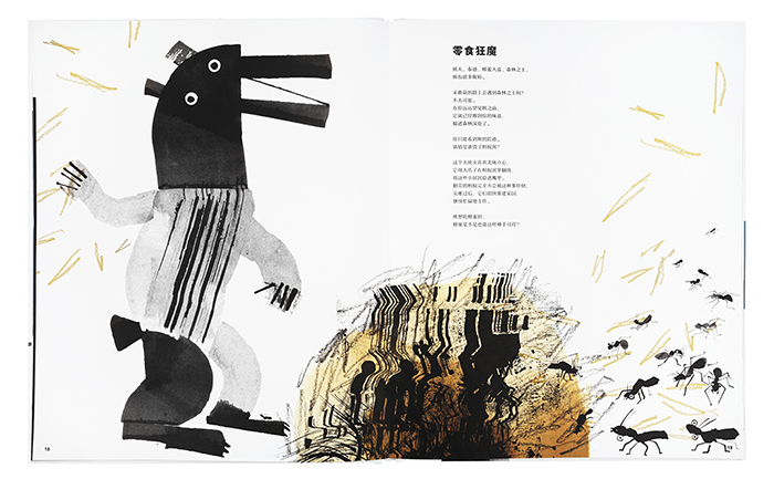 本书没有动用画笔,而是使用刷子、木片、小树棍、牙刷、海绵和刮刀之类奇怪的工具,涂抹出一部动物写真集,诗歌体动物小传。本书的超大开本,为表现动物形态及其生活的自然环境给足空间,向小朋友展现出一个趣味盎然的动物世界,并引动他们自由发挥的灵感,创作出自己的惊喜。