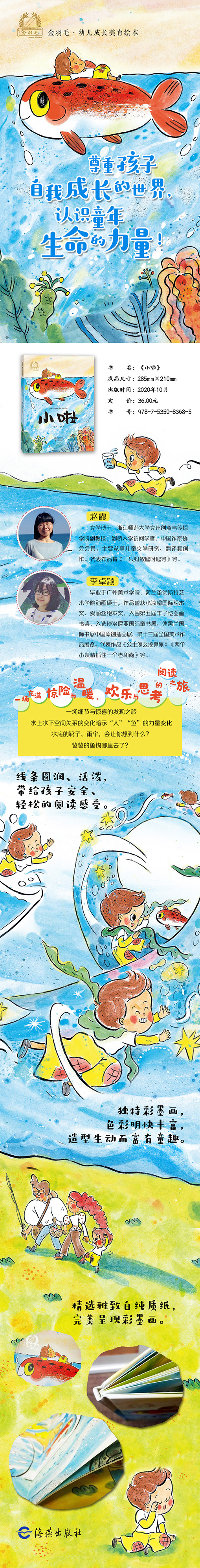 这是一部关于童年的欢快畅想曲,讲述了一个幽默而温馨的故事,蕴含着作者对童年生命力量的探寻与思考。小男孩一家来到池塘边郊游,爸爸妈妈都在忙自己的事情,独自玩的小男孩突然捉到一条小鱼,由此展开了奇妙的幻想之旅。