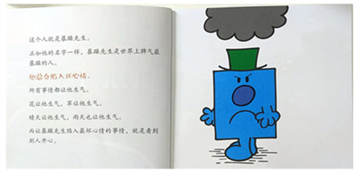 阳光小姐总是快快乐乐,暴躁先生总是心情不好,暴躁先生看到阳光小姐每天都很开心,他很生气,他想 出很多办法想让阳光小姐变得不快乐。可是任凭他怎么努力,也不能让阳光小姐不快乐,就像阳光小姐不能让他高兴起来一样。