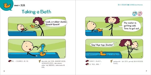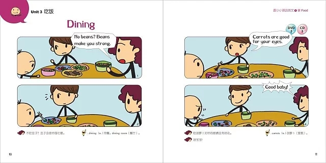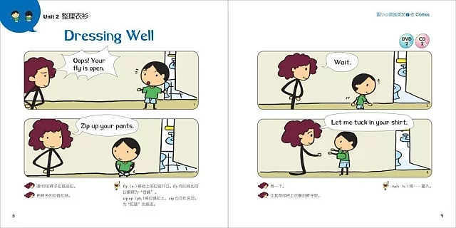 本套教材包括了《食》、《衣行病》、《生活常规》、《教育》、《室内娱乐》、以及 《户外娱乐》等。与日常生活息息相关的主题,每个主题下划分为数十个小单元,以呈现不同的情境,内容深入浅出,句法单字简单易学,是一套适合父母、老师使 用的英语育儿书籍!