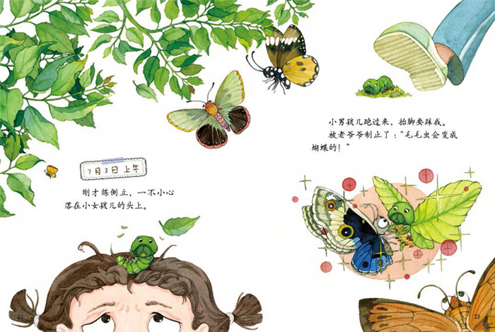 《毛毛虫的日记》以日记的形式,通过毛毛虫自身的讲述,展现出毛毛虫的身体特征、生活习性以及成长蜕变的过程。故事以拟人化的视角叙述着毛毛虫眼中的世界,将科普性和趣味性有机结合,充满幽默和童趣,是儿童步入科学领域的基础绘本。