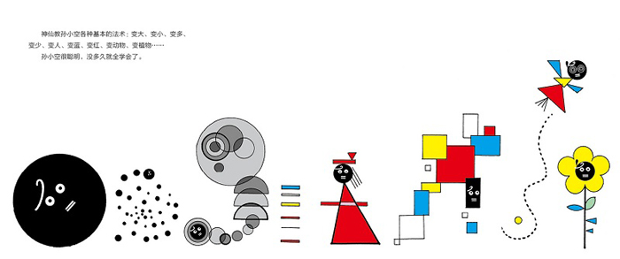 运用纯色与组合抽象几何图形设计的《孙小空72变》