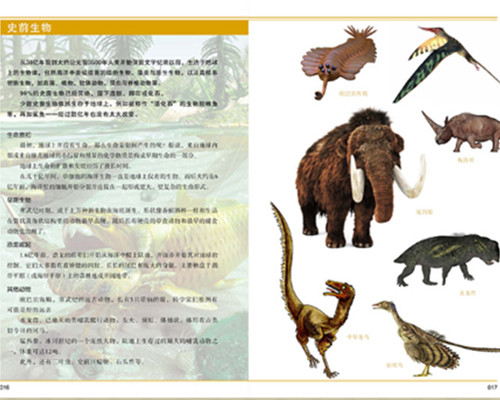 《恐龙与史前生命》以时间为轴,详细介绍了200余种恐龙和其他史前生命,包括了*原始的赫拉雷龙和始盗龙,生活在水中的鱼龙和滑齿龙,能够飞行的翼手龙和无鄂龙,*早的鸟类的祖先——始祖鸟等等。并介绍了它们的身体构造、命名者和生存环境等,并配备了精美的插图,帮助读者更准确地了解相关的信息。
