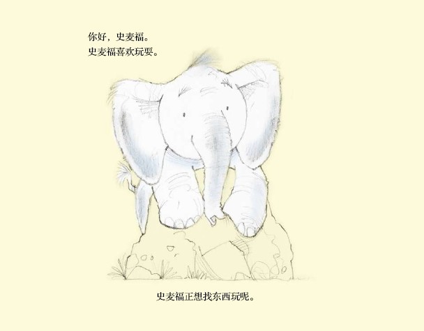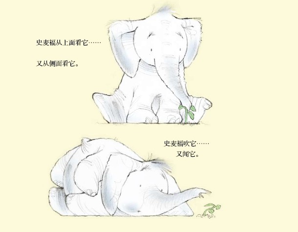 小象史麦福想要找人玩,突然发现地上有个小幼苗,史麦福小心翼翼地盯着它看,它越长越高了。这是蜜蜂嗡嗡飞过,蜜蜂不喜欢幼苗,从幼苗旁边一圈又一圈飞过。蜜蜂见到史麦福,又绕着史麦福飞呀飞,史麦福感觉蜜蜂遍布周围,没想蜜蜂又飞走了。这时下雨了,史麦福忙去躲雨,回来时看到幼苗已经长大。太阳照下来,幼苗好像开始变化了,成为一颗向日葵。蜜蜂又回来了,还带着蝴蝶一起与史麦福玩耍。