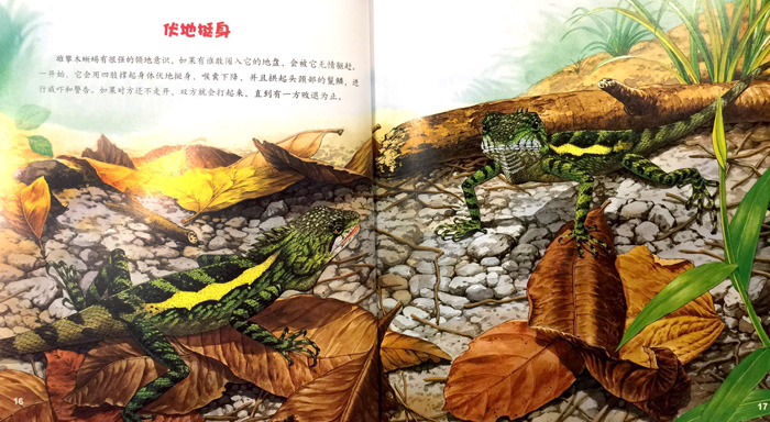 4 森林中的小霸王 ─ 攀木蜥蜴6 爱晒日光浴8 爬树高手11 身穿盔甲13 大快朵颐14 小心敌人16 伏地挺身18 挖洞产卵20 小蜥蜴孵化了22 天花板上的小霸王 ─ 壁虎24 神乎其神的壁虎功27 结婚进行曲 29 壁虎撒尿了30 以静制动的捕食行为32 丢卒保车的断尾将军34 沼泽里的小霸王 ─ 鳄鱼36 冷血动物的适应方式38 恐龙的远亲40 水陆两栖的健跑者42 无情的大杀手44 与水鸟共生46 会叫的爬行动物48 新生命的诞生50 天下慈母心52 小霸王待保育54 有问必答