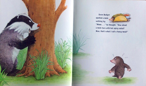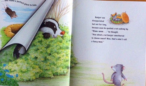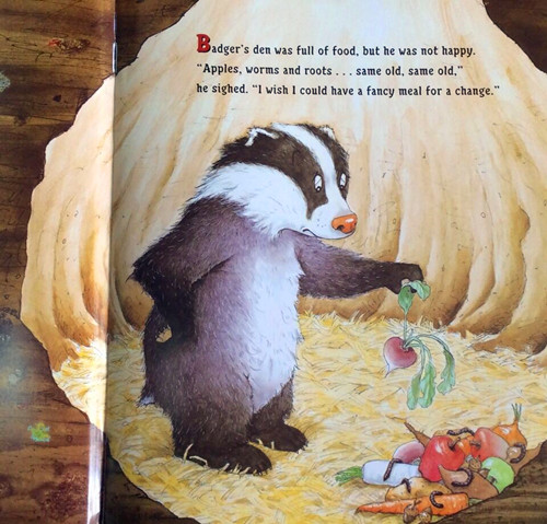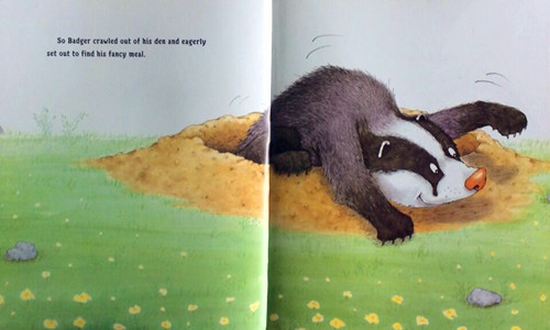 When apples, worms and roots become unbearably boring, Badger sets off to find more exciting food—but he can’t quite catch the main ingredients. Badger keeps searching until in frustration he shouts: “I’m so hungry I could eat a horse!” Unfortunately, a nearby horse doesn’t think that is so funny.