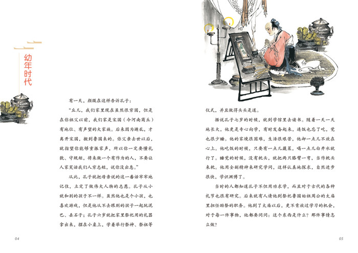 本书作者只捕捉圣贤成长过程中的关键节点、事件,避免事无巨细将人物一生流水账般记录,像好看的电影,有典型,有主次,有冲突,让孩子读起就不想放下。