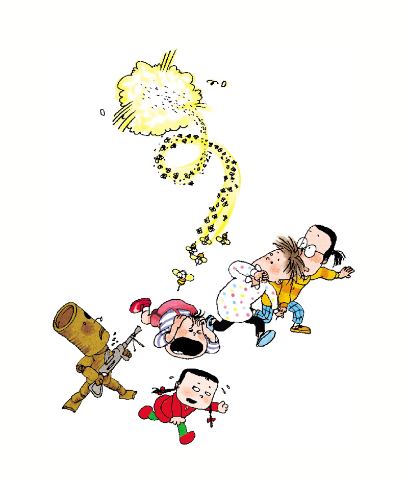 大厅两侧,都是彩色的大玻璃窗,从地面一直延伸到天花板上。地板又光又亮,竹脑壳刚踩上去就“咔嚓”一声,摔了个大跟头。阿辛跑上去拉他,自己也滑倒了。竹脑壳爬起来,还没站稳,又摔了个四脚朝天。这回他干脆不起来,哈哈笑着在地板上打滚儿。