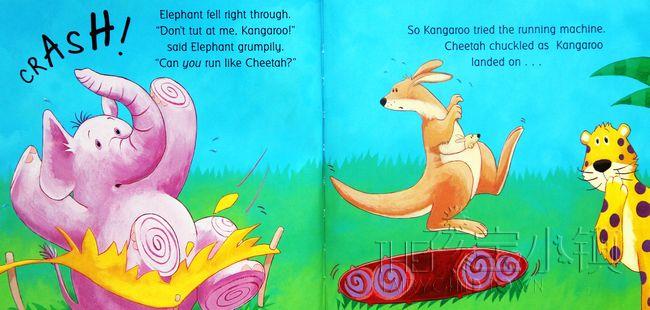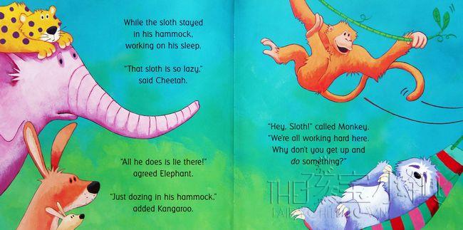 森林里的早晨,动物们起个大早。猎豹在练习飞奔,大象在举重训练,袋鼠妈妈肚子里装着小袋鼠进行跳跃运动,猴子也不甘示弱在努力在树枝间跳动。树懒还在干嘛呢? 睡着大懒觉。呵呵!树懒是很懒,可是这就是他的生活方式。