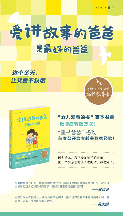希望有更多的人,可以像杨政先生一样,给自己的孩子讲读绘本那些世界上最美最好的书,在孩子的童年,把善和美,深深地植入孩子的心中,给孩子抵御丑恶的疫苗,让真诚、善良、坚毅、勇敢、勤劳、幸福,在孩子幼小的心中,发芽。