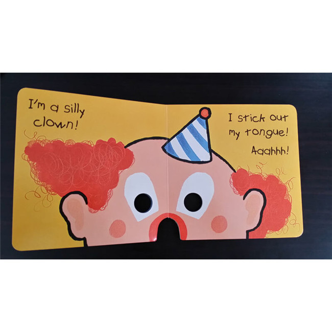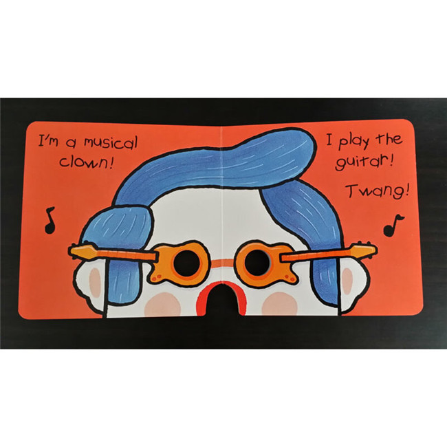 书本共十页,五个小丑面具!运用这本可爱的硬壳书,只要把书展开,对准正的地方把鼻子套进去,眼珠对准洞处,马上可以让孩子们进行一场有趣的瞬间变脸游戏!孩子们可以选择扮演每页各种不同的小丑,并且学着辨认不同外星人的差异性并练习形容每个小丑的特征,家长或教师可以让孩子面对镜子,提醒孩子在“变身”的同时也要变声..